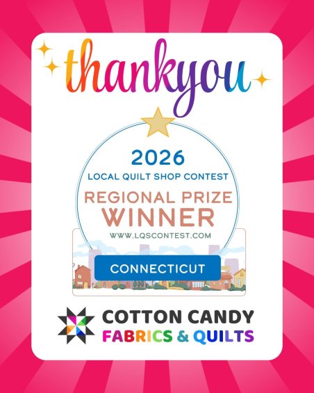 The entire CCF team thanks everyone who voted for Cotton Candy Fabrics in the ByAnnie.com LQS contest. We are so excited to win for Connecticut for the third year in a row, but are even more excited to read all of the comments and stories you shared. We are lucky to be in a great quilting state with lots of awesome shops, and that makes your vote mean even more.And to our team, thank you for all you do for our customers. You are the best. We'll celebrate soon!