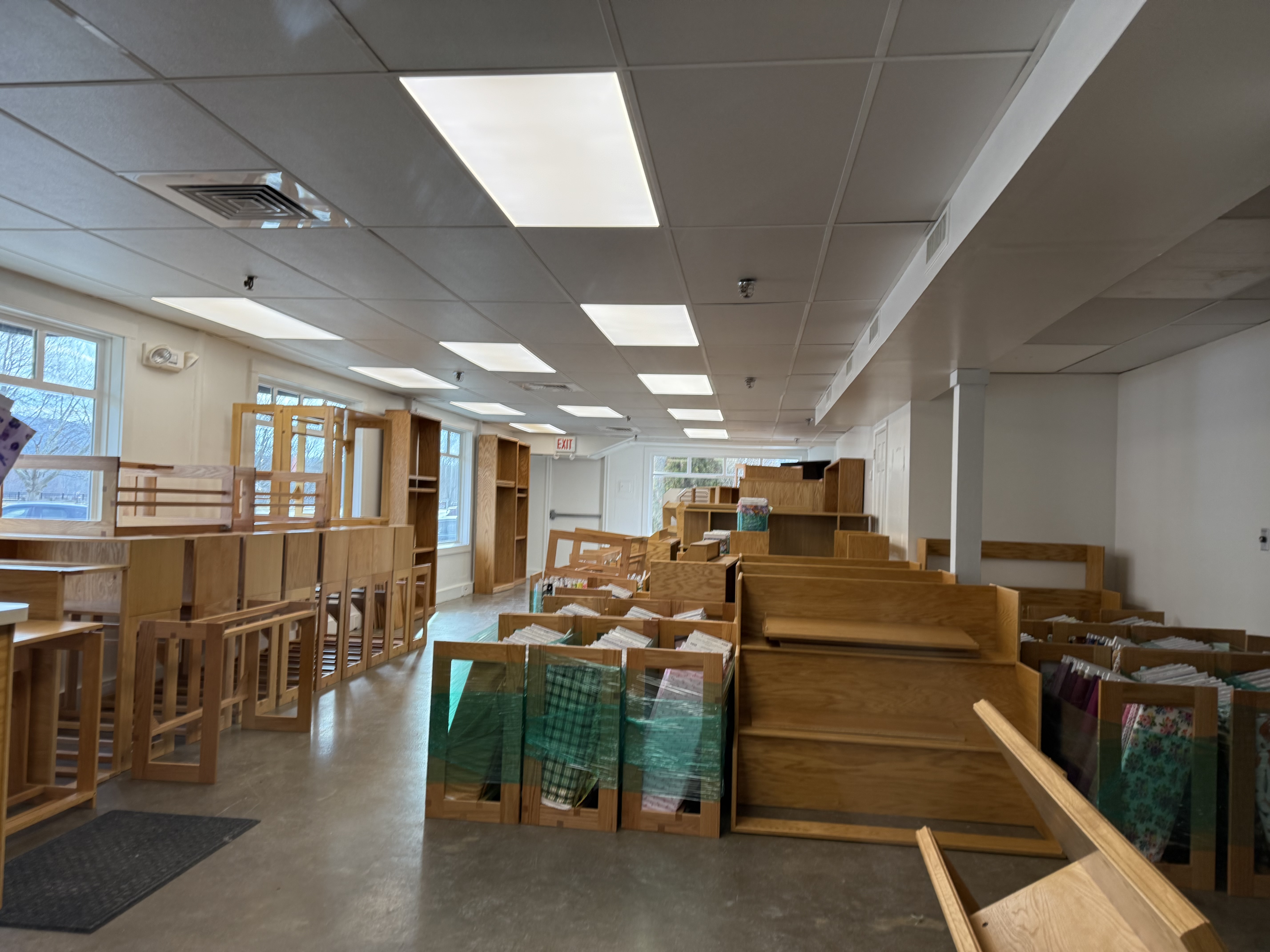 1/13/26 - In the classroom we have been stockpiling furniture. Next up is classroom set up which is critical because we have classes on the schedule! You can have a look on our Simsbury calendar but be sure to check back often as we are adding classes every week.