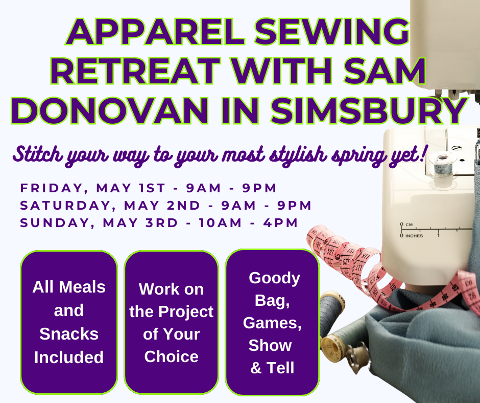 Sew Fun Apparel Sewing Retreat with Sam 5/1/26 - 5/3/26 - Simsbury